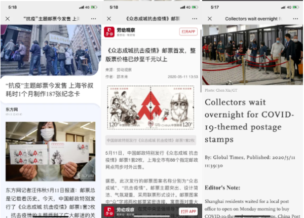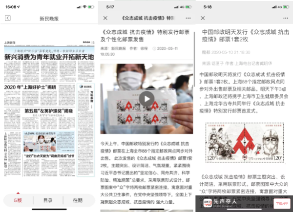 另外,今天发行的抗疫邮票也引起了上海各路媒体的广泛关注,东方卫视、上海电视台、上海人民广播电台、新民晚报、劳动报、解放日报、环球时报、东方网等媒体纷纷就此做了专题报道。