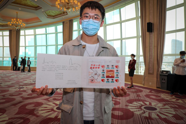 ▲拿到印有自己穿着防护服照片的个性化邮票,疫情期间前往湖北武汉金银潭医院支援的男护士马骏驰非常感动:“第一次看到邮票上还能印自己的照片,感觉很有纪念意义,我会好好珍藏的,这承载了我的珍贵回忆。”