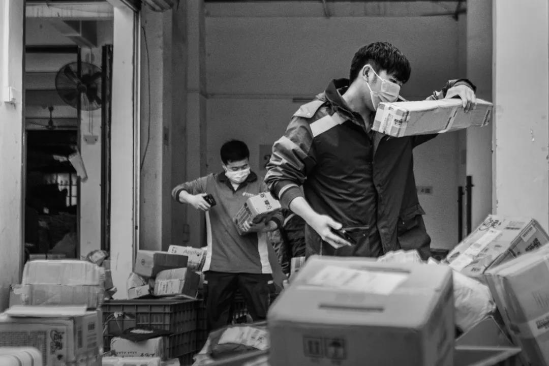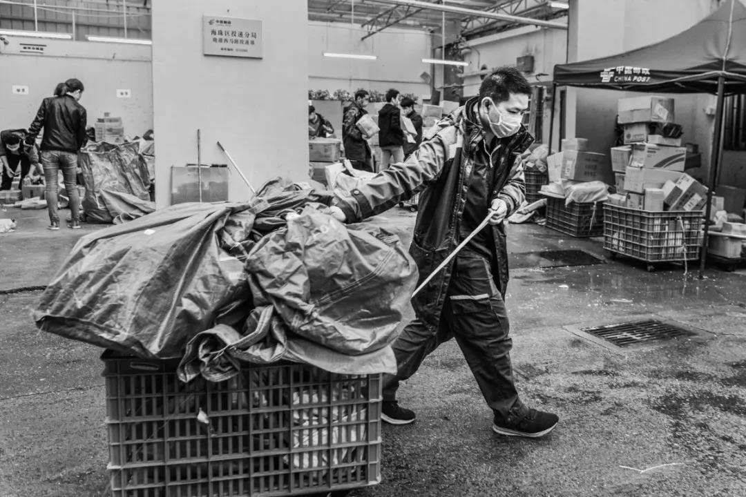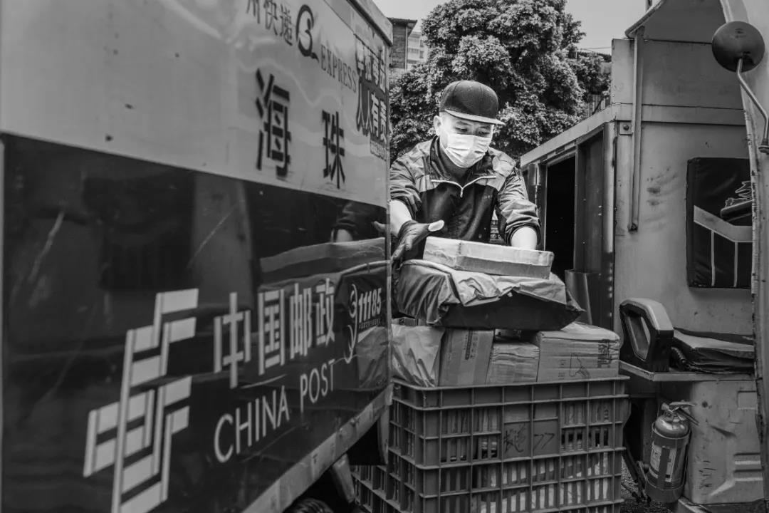 自疫情发生以来,广州邮政人从没有停止过为人民群众派送邮件报刊,一直践行着“人民邮政为人民”的神圣使命。作品拍摄于2020年3月广州市邮政分公司晓港西马路投递部作业现场。