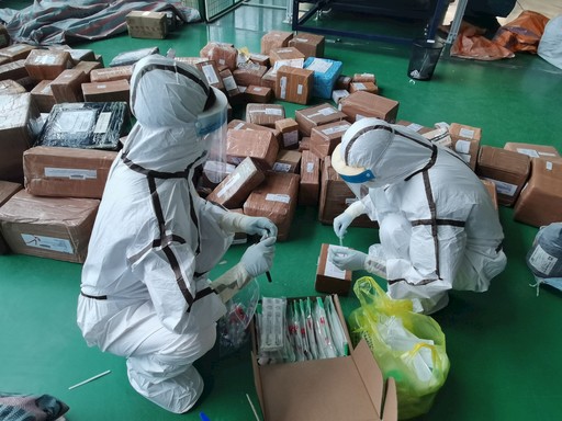 自6月8日零时起,安徽省合肥市成为北京国际客运航班第一入境点。合肥国际邮件互换局迅速应对,加强场地和人员防疫工作,确保进口邮件安全。图为6月16日,合肥海关工作人员在现场对国际进口邮件进行核酸检测。 □通讯员 凌云 记者 方怀银 摄影报道