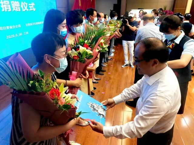 新甘肃客户端兰州6月30日讯 今天下午,由甘肃省卫生健康委员会和中国邮政集团有限公司甘肃省分公司共同举办的《众志成城 抗击疫情》邮折捐赠仪式在兰州举行,1045名奋战在抗击疫情一线的甘肃医务工作者将分别获得一份特别定制的纪念邮折。