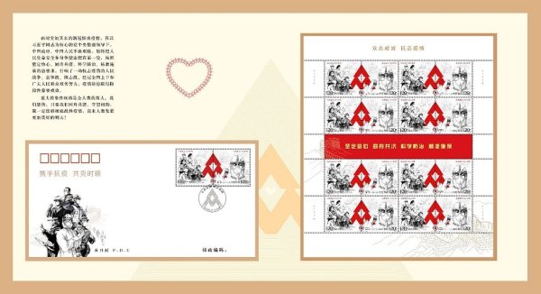 2020年5月11日,中国邮政集团有限公司发行了特11《众志成城 抗击疫情》邮票,通过“国家名片”讲述了感人的中国抗疫故事,弘扬了伟大的中国精神,充分展现了在党中央坚强领导下,举国上下凝聚起众志成城、抗击疫情的强大力量。此次捐赠医务工作者的定制邮折包含大版票、首日封,每个邮折都是唯一编码,含有特制的个人抗疫纪念章,具有特殊纪念意义。