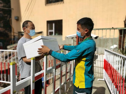因疫情突发,7月17日,新疆维吾尔自治区乌鲁木齐市民开启居家模式。为了让广大市民享受到“足不出户,蔬果到家”的贴心服务,乌鲁木齐市邮政分公司第一时间联系本地蔬菜供应商,采取“企业供货+邮政配送+无接触送达”的配送服务模式,按下了邮政同城配送业务的“快捷键”。目前,该分公司配送力量达300辆车、450人,确保将蔬菜、水果、米面油等生活物品尽快送至市民手中。后期,乌鲁木齐市分公司将扩大配送品种,增加素食、肉制品等,配送范围也将覆盖全市中心城区。图为7月18日,乌鲁木齐市分公司南昌路揽投部揽投员朱勇江为辖区内居家市民配送蔬菜。 □何玲  摄影报道