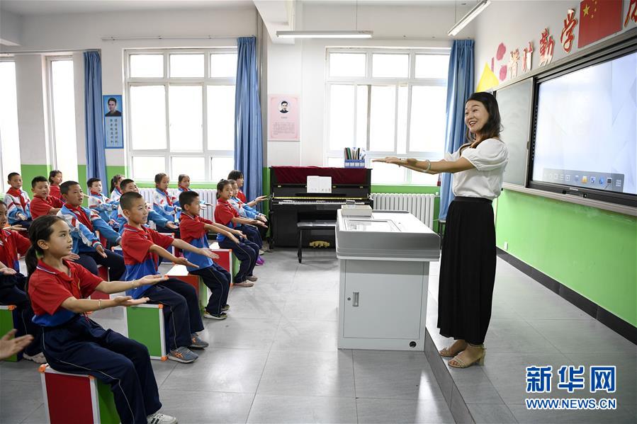 宁夏吴忠市红寺堡区红寺堡中心小学学生在上音乐课(7月3日摄)。 新华社记者 冯开华 摄