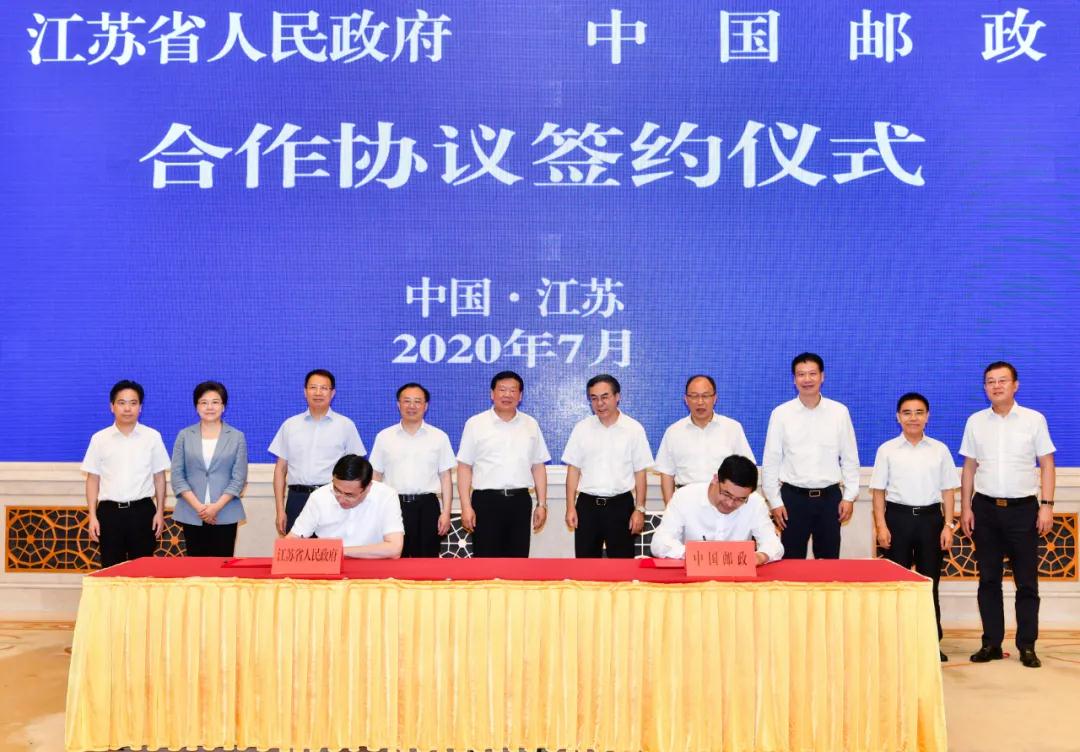 7月30日,中国邮政集团有限公司与江苏省人民政府在南京签署战略合作协议。江苏省委书记娄勤俭、省长吴政隆会见中国邮政集团有限公司党组书记、董事长刘爱力,党组副书记、总经理张金良一行,并共同出席签约仪式。江苏省委常委、省委秘书长郭元强,副省长费高云,南京市市长韩立明,省政府秘书长陈建刚,集团公司副总经理康宁参加有关活动。