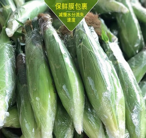 为确保玉米的新鲜,凌晨采摘,当天发货。所有玉米都带皮并包裹着一层保鲜膜,以减慢水份流失的速度,保持玉米的新鲜。