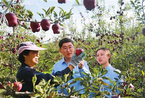 中秋时节,邮储银行甘肃省天水市分行信贷员走进天水市麦积区农业产业化重点龙头企业潘引军合作社,实地了解邮储银行信贷支持合作社苹果种植情况。合作社社员随手从挂满果实的树枝上摘下一个沉甸甸的苹果,递给信贷员看。信贷员望着眼前带着果香的大苹果,脱口而出:“今年这苹果,真棒!”