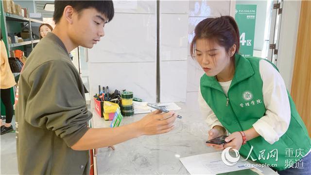 “同学,请扫描二维码,填写您的寄件信息。”9月24日10:30,在重庆工商职业学院校园邮驿内,物流管理专业大二学生刘沁渝微俯着身子,熟络地向前来寄件的同学介绍包裹收寄流程,验视、打包、计量、打印一气呵成:“请拍下您的快递单号,直接搜索单号就能查询到物流情况。”