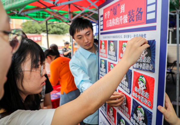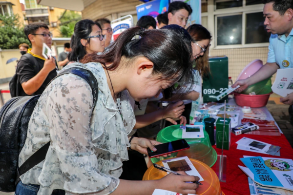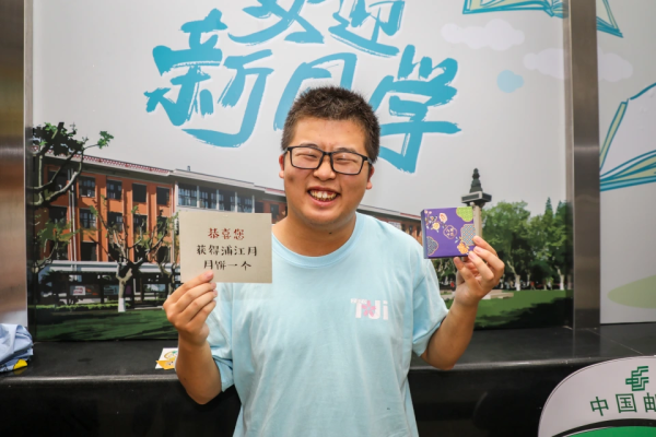 此外,活动现场更有抽盲盒活动,同学们凡扫码加入中国邮政会员,即可获得一次抽盲盒的机会,EMS寄递优惠券、个性化邮票10元优惠券、浦江月月饼、各种文创产品,青春主题信用卡校园版,在升级学生开学装备的同时,让学生和家长体验邮政的产品和服务。