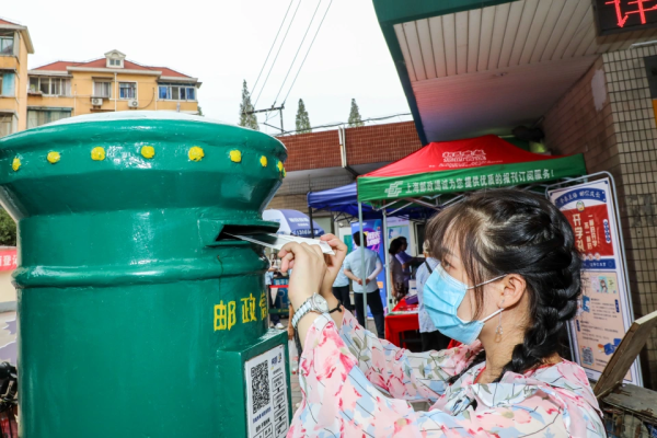 9月10日下午,活动在同济大学邮政所展开,同学们我手写我心,用书信送上一份温暖的情。因邮政所地处同济大学旁,是学生们上下课的必经之路,人流量较多,现场一度人头攒动。