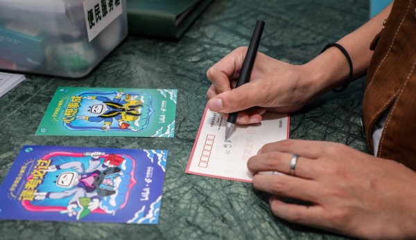 完成这一系列的趣味活动之后,学生们纷纷在“开学幸运小邮局”定制明信片上手写下祝福,并通过专属邮筒传递出去。