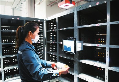 日前,合肥邮区中心局结合智能分拣搁架,搭设新的异形件流水线,并采购邮袋50万条、PDA300台、蓝牙打印机150台、定制笼车200辆,做好旺季生产准备。据了解,智能分拣搁架用于处理小型包状邮件及扁平类邮件,通过扫描将邮件信息上传新一代寄递平台,根据新一代寄递平台的分拣方案,正确指示邮件物理格口,并将入格结果等信息反馈新一代寄递平台,是邮件自动化信息化处理系统中的辅助设备。图为工作人员在测试智能分拣搁架功能。
