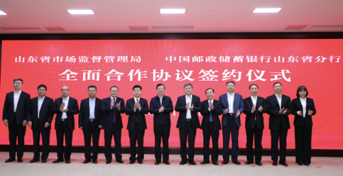 11月20日上午,山东省市场监督管理局与中国邮政储蓄银行股份有限公司山东省分行(简称“邮储银行山东省分行”)签署全面合作协议。此次签约是落实山东省人民政府与中国邮政集团公司战略合作协议,推动放管结合、优化服务,持续激发市场主体活力的重要举措。