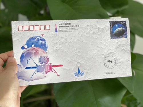 11月24日4时30分,长征五号遥五运载火箭在中国文昌航天发射场点火升空,成功发射探月工程嫦娥五号探测器,火箭飞行约2200秒后,顺利将探测器送入预定轨道,开启我国首次地外天体采样返回之旅。为纪念这一历史时刻,中国集邮总公司发行纪念封一枚。