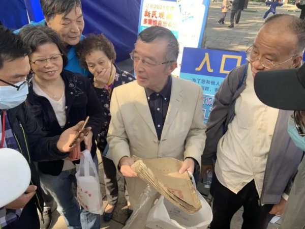 人群中,一位张老先生引起了大家的“围观”。只见张老先生手里拿着一份1957年新民晚报合订本,正与工作人员及周围群众热情地交流自己多年的订报经历。张老先生说自己钟爱阅读,和报纸有着深厚的情感,期间还多次投稿,看到好的文章就会保存起来,“从50年代开始家里就一直订阅报纸,邮政的报刊大收订活动,年年办,我年年来。”