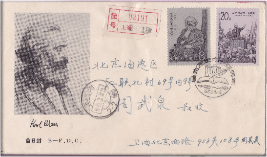 △马克思诞辰一百周年首日封