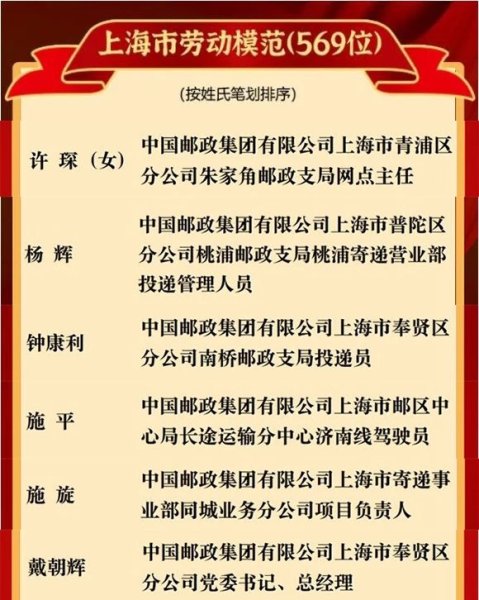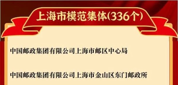 今天下午,2020年上海市劳动模范(先进工作者)和模范集体表彰大会隆重召开。继上海邮区中心局柴闪闪荣获全国劳动模范荣誉称号之后,上海邮政又有6名员工被授予上海市劳动模范称号、2个集体被授予上海市模范集体称号。