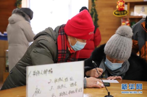 12月28日,游客在北极村邮政支局为亲友写明信片。