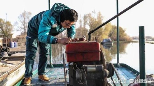 船,是王少朋的劳动工具,也是陪伴他最久的伙伴。冬天到了,每次停船靠岸时,他都多了一项工作,就是将发动机里的水放出来,以免上冻,再用被子仔仔细细地盖上。这个“老伙计”跟了他十年了,王少朋十分熟悉它的“脾性”。一旦忘记这个环节,冻坏发动机是要耽误行程的。“它年纪大了,经常维修,一年得有个几回。”