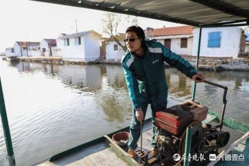 早上八点半,南阳湖上托起太阳,湖面波光粼粼。王少朋背着绿色的邮差包,路过卖早点的、卖鲜鱼的,踩着青石板,穿过几条巷子来到码头。“一年当中,冬天最难熬,穿再厚都能冻透。今天天气已经算是很好了。要是遇到雨雪天、大风大雾,那就麻烦了。”此时,微山县气温3摄氏度,湖上温度要比这低好几度。