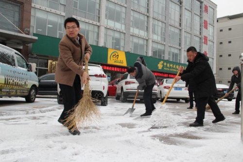 受强冷空气影响,“寒潮”一夜间为整个城市披上了银装,在带来美丽雪景的同时,也给市民出行带来了安全隐患。邮储银行东营市分行员工组织对网点门口及附近道路上的积雪进行清扫,为过往行人及客户清理出一条安全通道。大家挥动铁锹、推动雪铲,干得热火朝天,忙碌的身影构成了一道道亮丽的风景线。