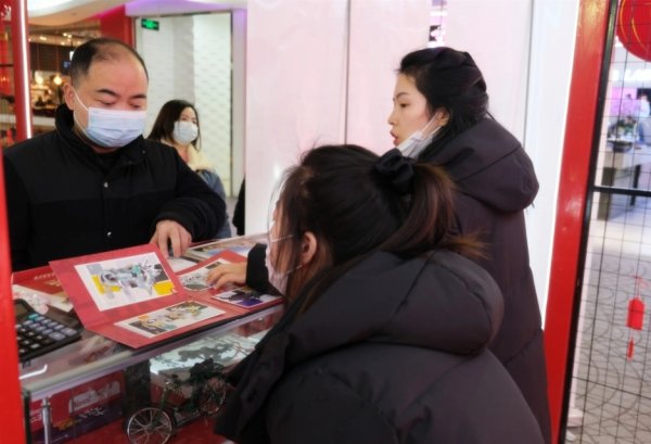作为邮政新进大学生的宋璐瑶,正在展柜前向顾客推介邮品。利用闲暇时间作兼职主播的她,介绍产品驾轻就熟,甜美的笑容也获得了不少客户的青睐。