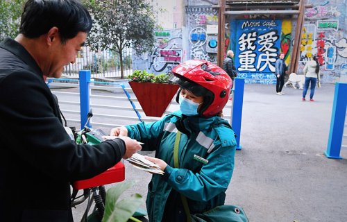邮妹是石坪桥街道的居民给杨家坪发行投递中心女子投递组程玉道起的昵称。程玉道负责石坪桥街道片区的投递工作,这里的居民都已经认识她,每次看到她都会亲切的跟她打招呼问好。