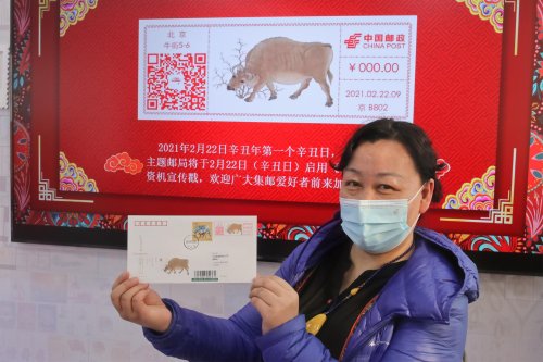 2月22日是辛丑年第一个辛丑日,北京邮政启用了第一枚《五牛图》邮资机彩色宣传戳,并首次尝试邮资机宣传戳产品线上定时寄预约实寄服务。