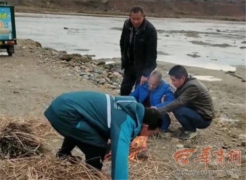 围观救援过程的村民们,有的拿来干净的大棉袄,有的端来热水,有的找来干草点燃生火……有两个村民为老人换上衣服后,扶着他坐下来烤火,过了好一会儿老人才缓过劲儿,慢吞吞说了句“我活过来了”。