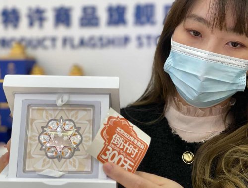 据悉,本次倒计时300天系列产品以造型别致、富有设计感的徽章和纪念封为主,部分新品已在四月特许上新日亮相在大众面前,市场反响十分热烈。承载浓厚历史底蕴,以正阳门及箭楼为元素的系列徽章、马克杯和银章特许商品,和设计精巧、内涵玄机冰墩墩冰球运动造型的倒计时300天纪念徽章,以及点燃冬奥倒计时系列徽章—冬奥首金……一款款设计巧妙,制作精良的倒计时300天系列产品,都是冬奥旗舰店内销售的“宠儿”。