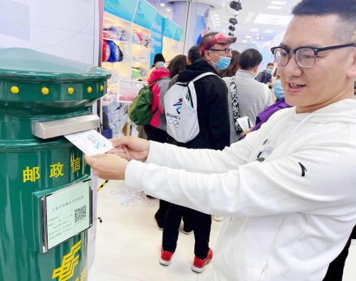 4月10日是北京冬奥会开幕倒计时300天,在王府井工美大厦一层的北京2022官方特许商品旗舰店内,多款倒计时系列产品集中亮相。当日,中国邮政集团有限公司北京市分公司发行的一款倒计时300天系列纪念封,在冬奥旗舰店内亮相首发,纪念封上贴有北京2022年冬奥会吉祥物邮票,十分具有纪念意义。活动当天,纪念封设计者也莅临冬奥旗舰店现场,讲述产品设计背后的故事,并进行了现场签售。除热闹的签售现场外,冬奥旗舰店内的邮筒也吸引了现场顾客的关注,有顾客选择购买倒计时300天纪念封后,直接通过邮筒寄出,别有纪念意义。