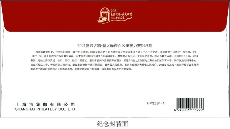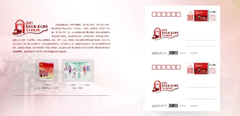 接力赛开赛在即,为了更好宣传本次比赛!上海邮政联手主办方共同推出了两款《2021年复兴之路·薪火驿传百公里接力赛》主题邮品,让我们一起先睹为快!