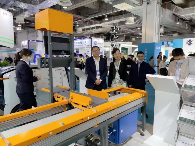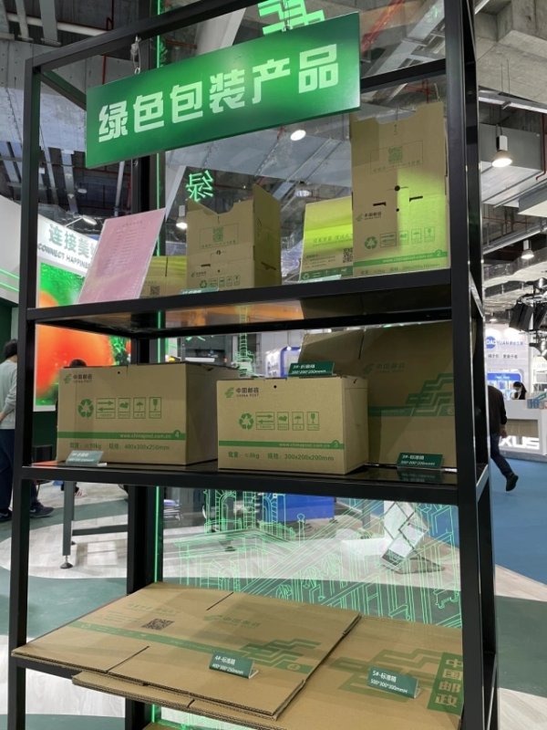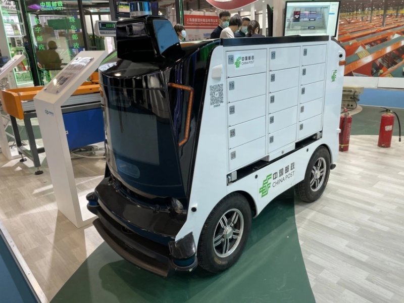 上海邮政现场展示了往复式小件分拣机、无人投递车、无人机、绿色包装箱等科技、环保产品及应用场景。