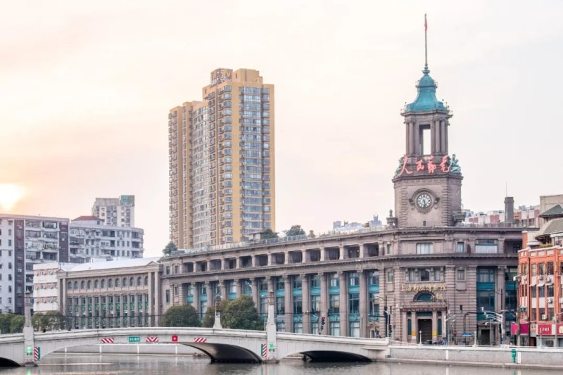 黄浦江与苏州河交汇处的上海邮政大楼