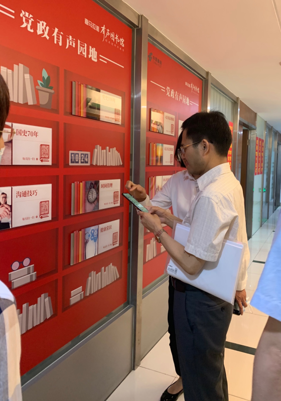 在虹口区分公司现场,集团指导组一行先行参观了虹口区分公司企业文化墙和宣传栏,并在喜马拉雅图书墙前驻足扫码试听,随后到场旁听了虹口区分公司党委理论中心组学习会。区分公司党委书记、总经理杜娟,区分公司副总经理张力,金融业务部经理许永兴分别领学了《中国共产党简史》两个篇章、习近平关于红色基因的论述等内容,并结合工作实际交流心得体会。