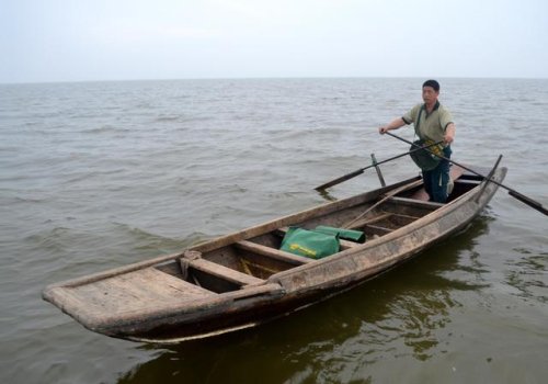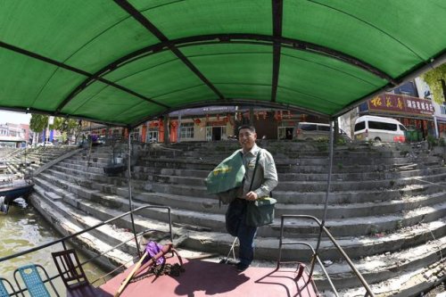 荆州日报新媒体:一人双桨划木船 湖上投邮十余年