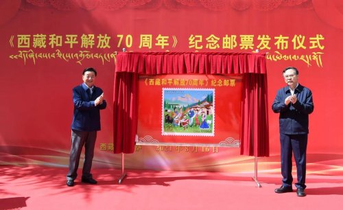 在西藏各族人民喜迎西藏和平解放70周年之际,8月16日,《西藏和平解放70周年》纪念邮票发布仪式在拉萨举行。西藏自治区副主席甲热·洛桑丹增,中国邮政集团有限公司党组书记、董事长刘爱力致辞,并共同为《西藏和平解放70周年》纪念邮票揭幕。中国邮政集团有限公司副总经理康宁,西藏自治区、集团公司相关部门负责同志出席。