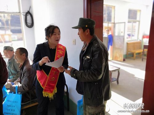 邮储银行工作人员下乡给村民讲解贷款政策。邮储银行河北省分行供图