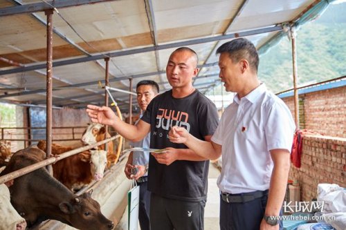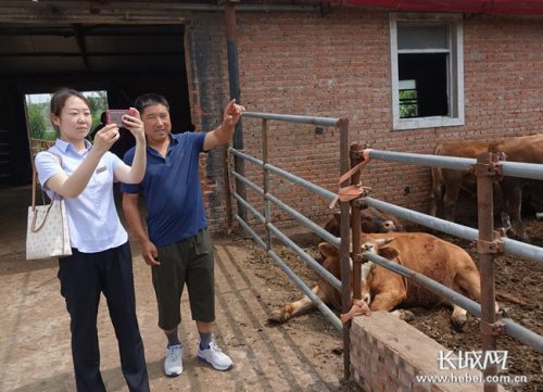 邮储银行工作人员深入养殖户牛舍了解养殖情况和贷款需求。长城网记者 吴新光 摄