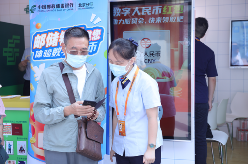 “快看快看,我使用数字人民币支付1元钱,抽到了一个限量邮品的盲盒!”邮储银行的展区里,一名数字人民币体验者兴奋地向同伴展示自己的“成果”。