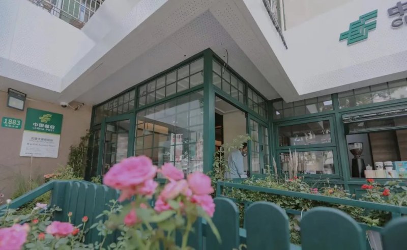 邮局外部被鲜花与绿植簇拥,墨绿色的栅栏、花园般的庭院设计,带给人耳目一新的感觉;内厅则为木质装修,以30年代典雅的欧式建筑风格及开放式格局为基调,浓缩了百年的邮政历史,怀旧又不失洋气,展现出主题邮局独特的风貌与情怀。另外值得一提的是,这家主题邮局在保留邮政普遍服务、集邮、寄递等基础性业务的同时,特别开辟室外拍照打卡区、咖啡售卖区及文创产品陈列区。