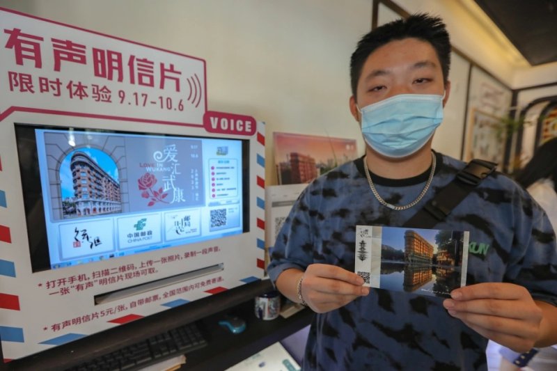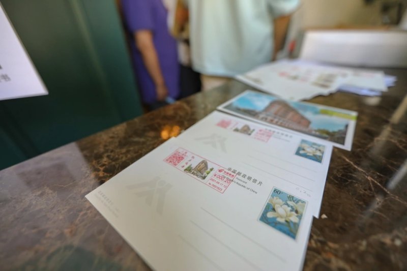 △在主题邮局还能体验有声明信片打印、加盖纪念邮戳,为远方的朋友送去祝福