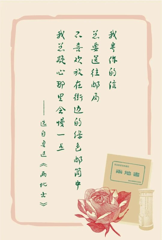 △在1925年3月至1929年6月间的书信合集《两地书》上有这样一段记载:“我寄你的信,总要送往邮局,不喜欢放在街边的绿色邮筒中,我总疑心那里会慢一点。”