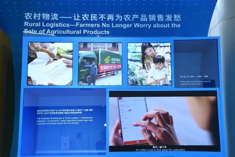 可持续交通与区域发展板块展示了在推进城乡融合发展方面,中国邮政积极发挥行业“国家队”作用,助力构建县乡村三级农村物流服务体系,完善城乡货运物流体系,促进城乡资源要素自由流动。湖北省赤壁市积极打造“交邮融合+电子商务”农村物流服务品牌,整合多部门物流资源为农产品销售和农民生产生活提供便利。