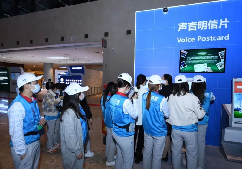 互动体验区的声音明信片打印机则成了“团宠”。这台机器可以实现用户个性化邮政自助声音明信片打印。用户通过手机微信上传自己要打印的图片,选择主题水印模板,后台程序会自动合成打印。众多国外参观者连连称赞中国邮政“Good, Good”!