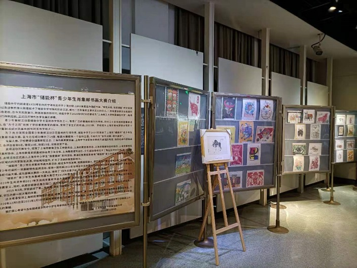 2020年12月5日,上海市“储能杯”青少年生肖牛年集邮书画大赛获奖作品展开幕式在博物馆举办。市教委体卫艺术科处黄峰、博物馆原副馆长秦国敏、少年日报上海中学生报副总编杜晓峰、上海理工大学附属储能中学校长苏浩泂、上海集邮协会青少工作负责人李龙根、获奖学生代表及上海理工大学附属储能中学30余位师生出席开幕式,与会人员在活动纪念封上签名留念。此次展出了大赛绘画优秀作品金奖6幅,银奖10幅,铜奖15幅,优胜奖若干幅,展期1个月。