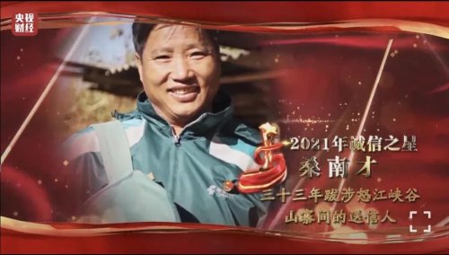 为深入贯彻习近平总书记关于诚信建设的重要指示精神,大力培育和弘扬社会主义核心价值观,生动讲述先进典型讲诚信、重诚信、守诚信的感人故事,推动诚实守信成为全社会的共同价值追求和自觉行动,中央宣传部、国家发展改革委近日向社会发布了2021年“诚信之星”,包括2个集体和8名个人。其中,中国邮政集团云南省怒江傈僳族自治州分公司泸水市称杆乡邮政所所长桑南才光荣当选。