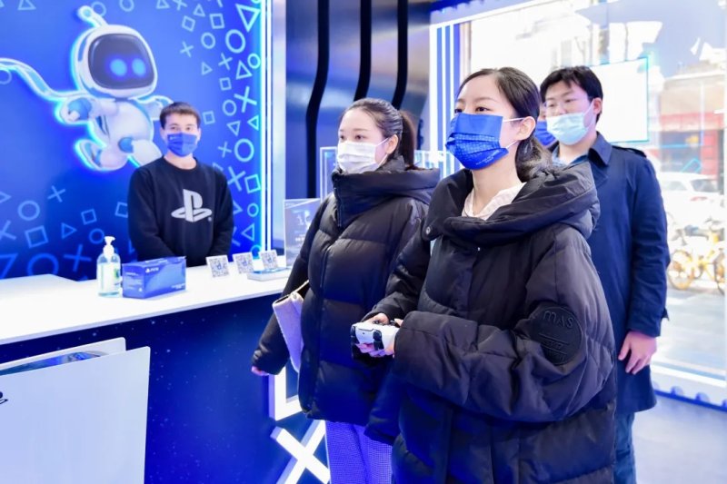 △活动现场试玩区域,陈列两侧的国行PS5主机让来到活动现场的嘉宾充分体验到全新升级的游戏体验,更流畅的运行速度,更细腻的画面表现力,层次更加丰富的声音引擎系统,都让人沉浸其中。