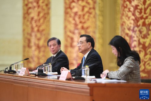 3月11日上午,十三届全国人大五次会议在北京人民大会堂举行记者会,国务院总理李克强应大会发言人张业遂的邀请出席记者会,并回答中外记者提问。新华社记者 李鑫 摄