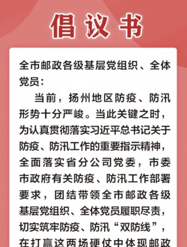一篇倡议书,展现了全市邮政干部员工在这关键时刻,愿意勇挑重担、齐心协力的担当作为。